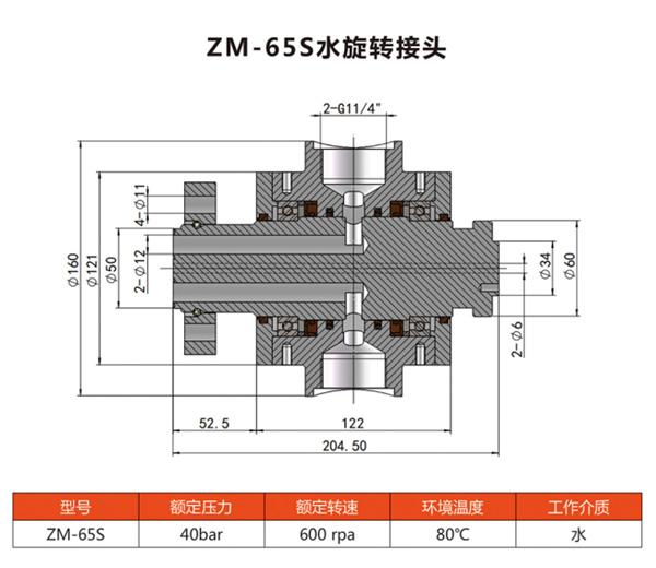 ZM-65S是并聯(lián)的雙通道、大流量水旋轉(zhuǎn)接頭。殼體上裝有非常耐用的密封件,同時兩側(cè)裝有適合高速和承受壓力10bar的軸封,起到了雙層密封效果。中心軸與密封件接觸部分采用了陶瓷處理工藝,光滑且耐磨。所有零部件全部采用304不銹鋼制作,并配有陶瓷軸承,極大的延長了接頭的使用壽命。由于中心部分沒有占用,可以.為其它介質(zhì)提供通道。