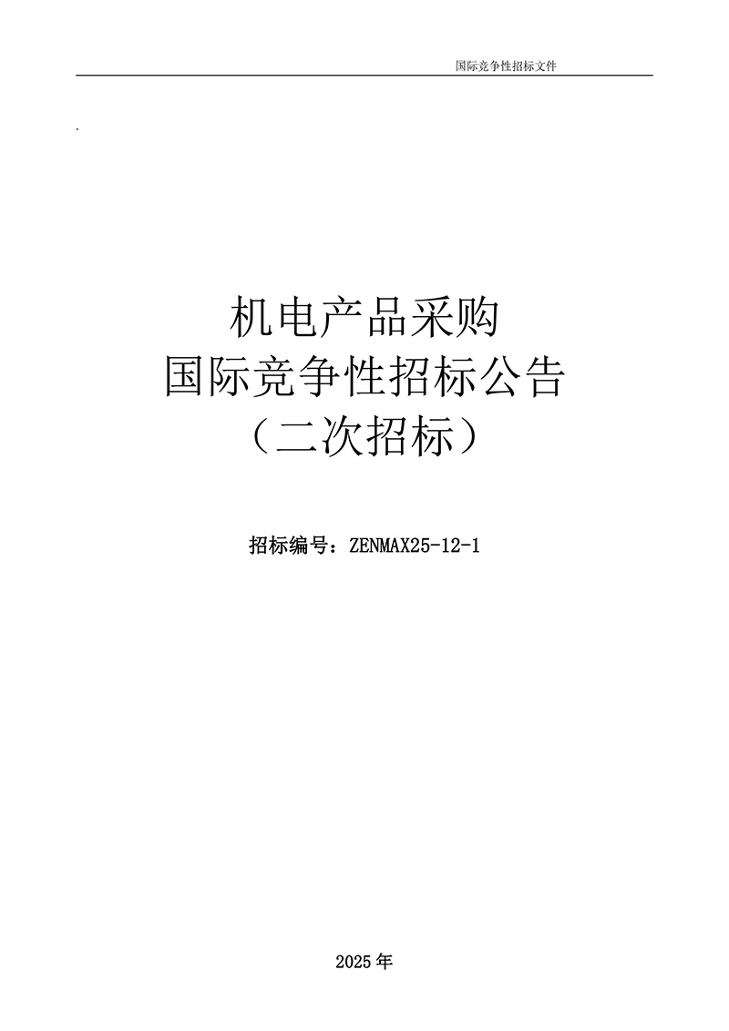 機(jī)電產(chǎn)品采購國際競爭性招標(biāo)公告(二次招標(biāo))